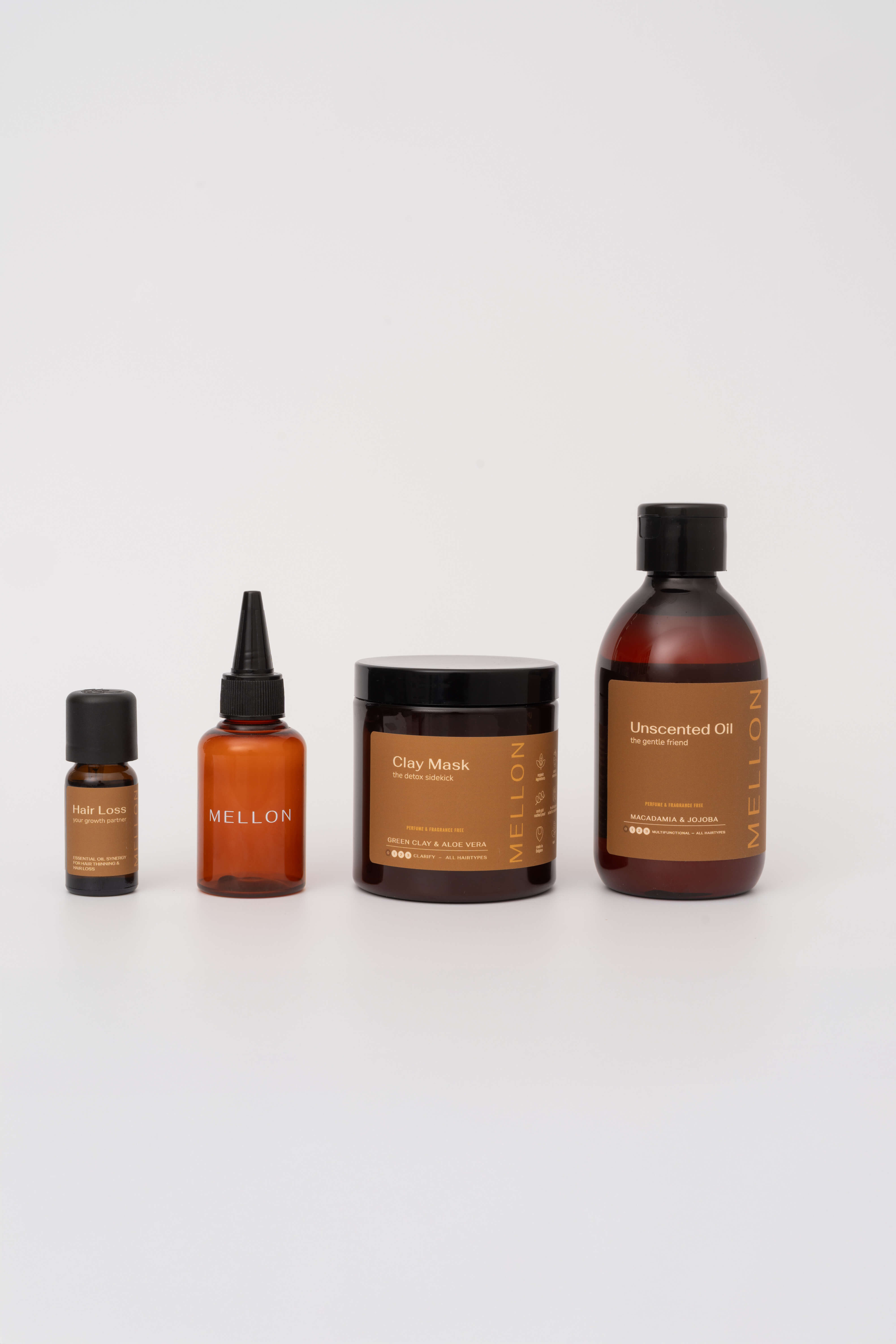 - Ons groene kleimasker: Voor een diepe reiniging die de hoofdhuid ontgift en de bloedcirculatie stimuleert. Ook hier kun je de synergie aan toevoegen.