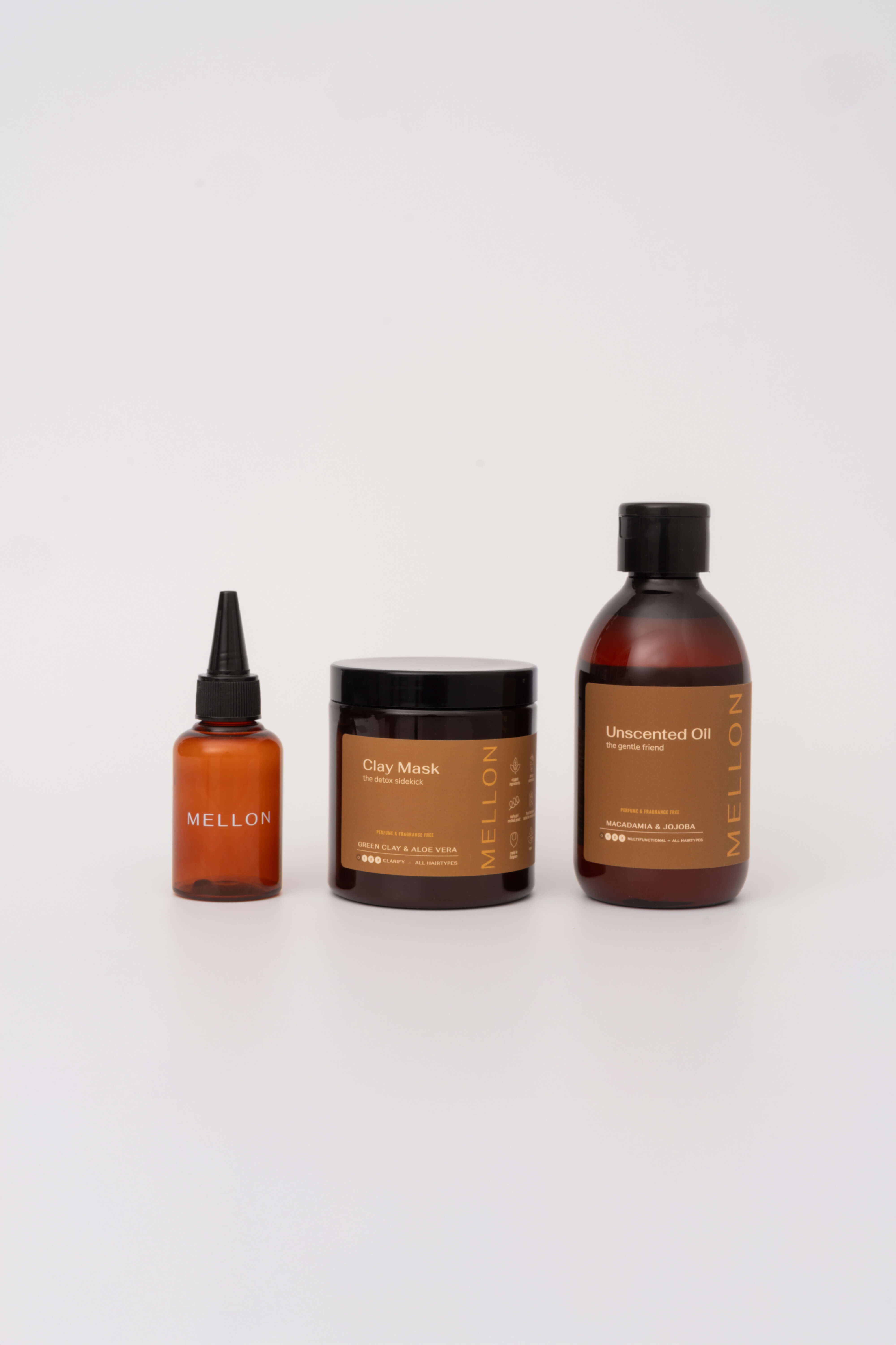 - Ons groene kleimasker: Voor een zachte maar effectieve reiniging die de hoofdhuid kalmeert en verzorgt.